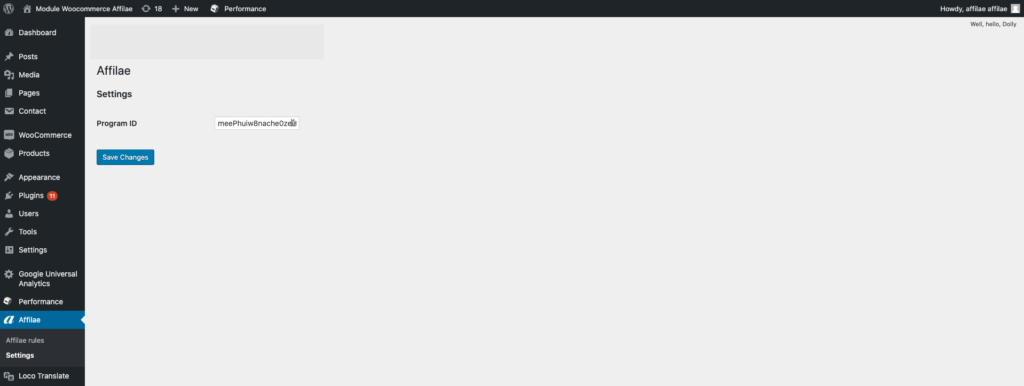 - In your WordPress admin, click on Affilae (new menu).