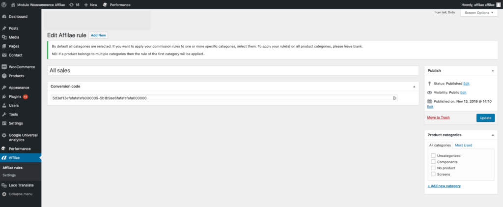 - This WooCommerce module also manages commission rules by product category.