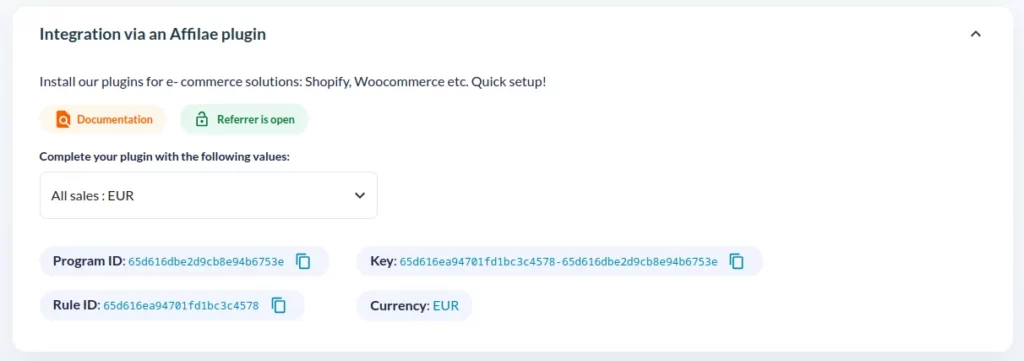 Where to find your Program ID? Affilae Admin ➜Configuration ➜ Tracking ➜ Integrations with an Affilae module