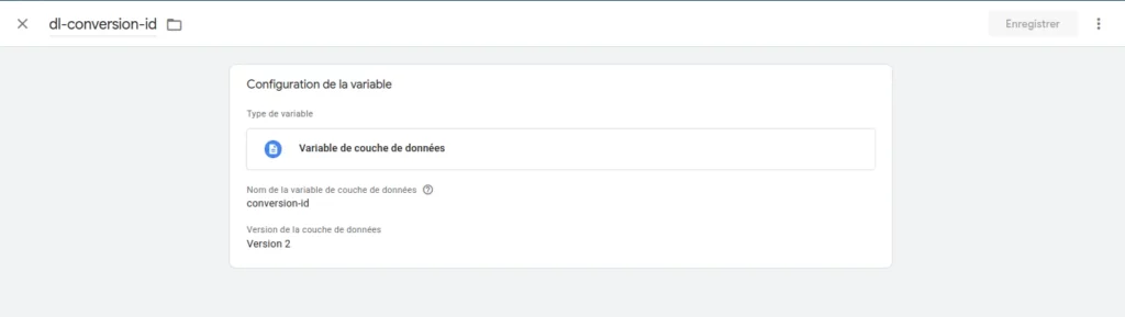 - Nom de variable : dl_conversion_id (selon votre dataLayer)