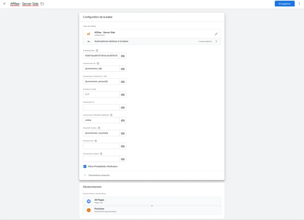 ⚠️ Cochez « Allow Probabilistic Attribution » (en bas du tag)