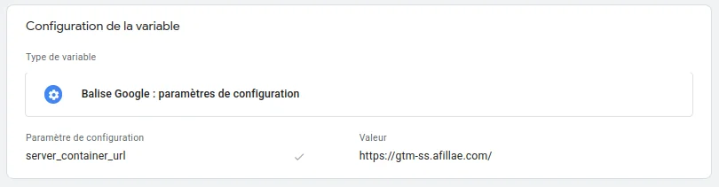 - Valeur : Votre domaine server-side (ex: https://sgtm.votresite.com)